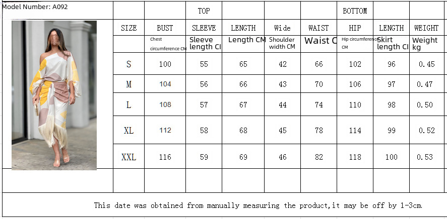 New Printed Lantern Sleeve Loose Top Tassel Hem Skirt Women's Two-piece